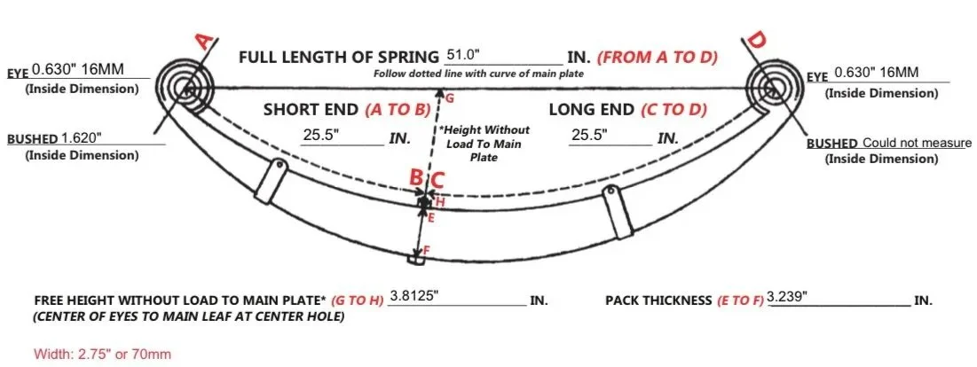 When considering leaf springs for your project, several critical factors must be accounted for. While some dimensions are determined by the factory design, others can be customized to suit your build’s specific needs. Key variables include: