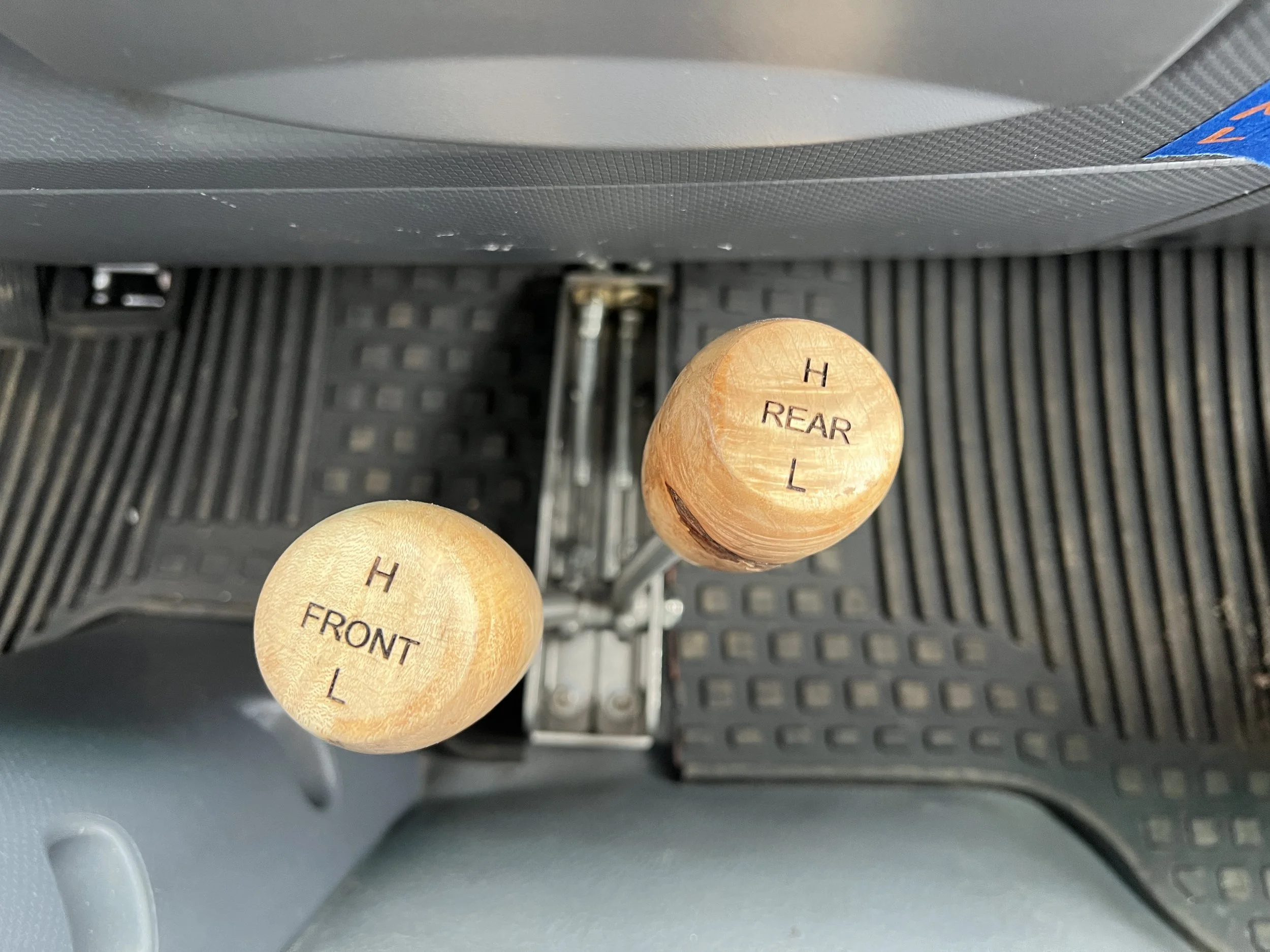 For a personal touch, we commissioned a woodworking friend to hand-turn custom shift knobs. The tops were laser-etched with our specific shift pattern for quick reference in the driver seat.