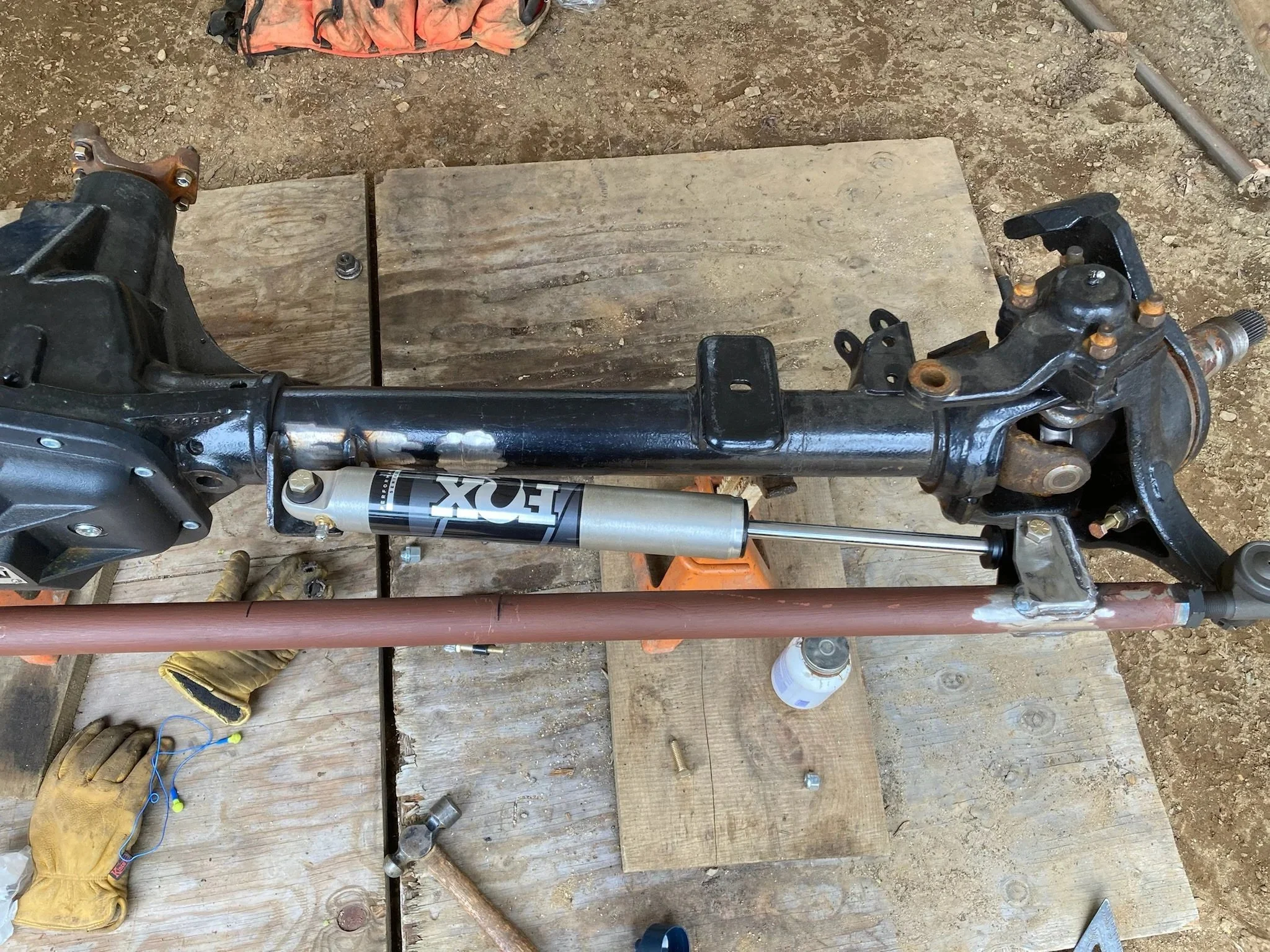 For added control, we installed a Fox steering stabilizer to minimize feedback and vibrations from the road and trail. The stabilizer was mounted securely with custom brackets welded to the tie rod and axle tube, ensuring full lock-to-lock movement without issues.