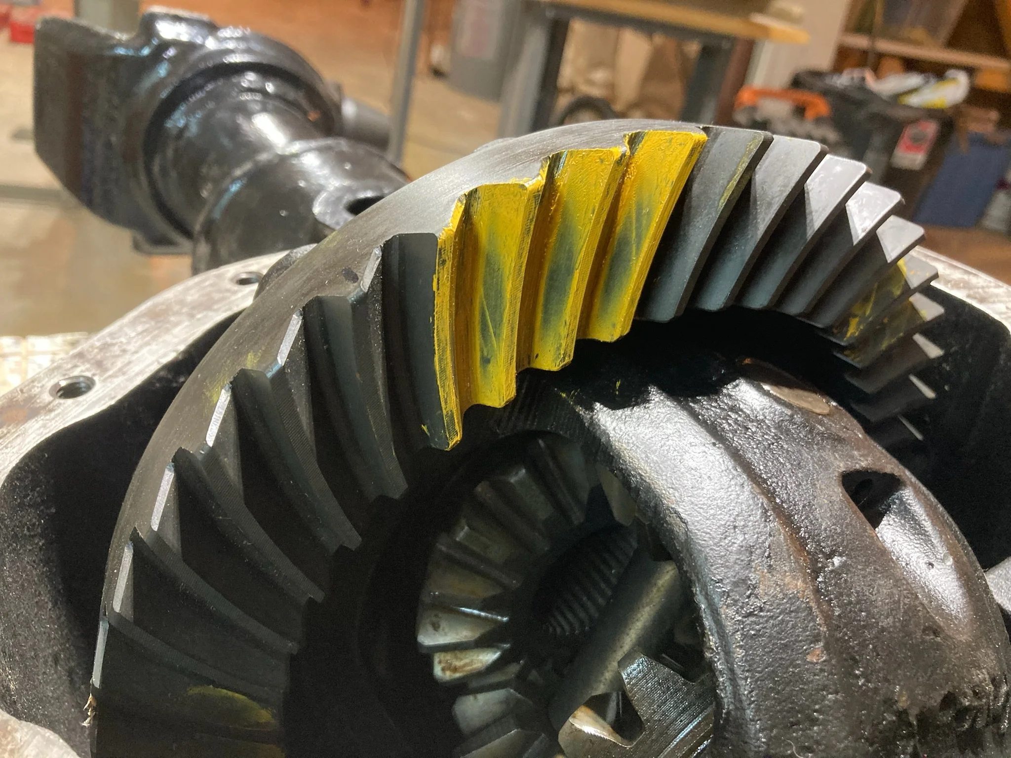 The stock 4.56 gearing in our Dana 60 axle was fine for general off-road use, but we needed something more suited for our heavy truck and highway transmission. After doing the math and considering our needs, we opted for 5.38 gears, this was the lowest we could feasibly go. This gave us the optimal balance between highway speed and slow off-road crawlability, especially when paired with our long legged 6-speed transmission and NP205 transfer case.