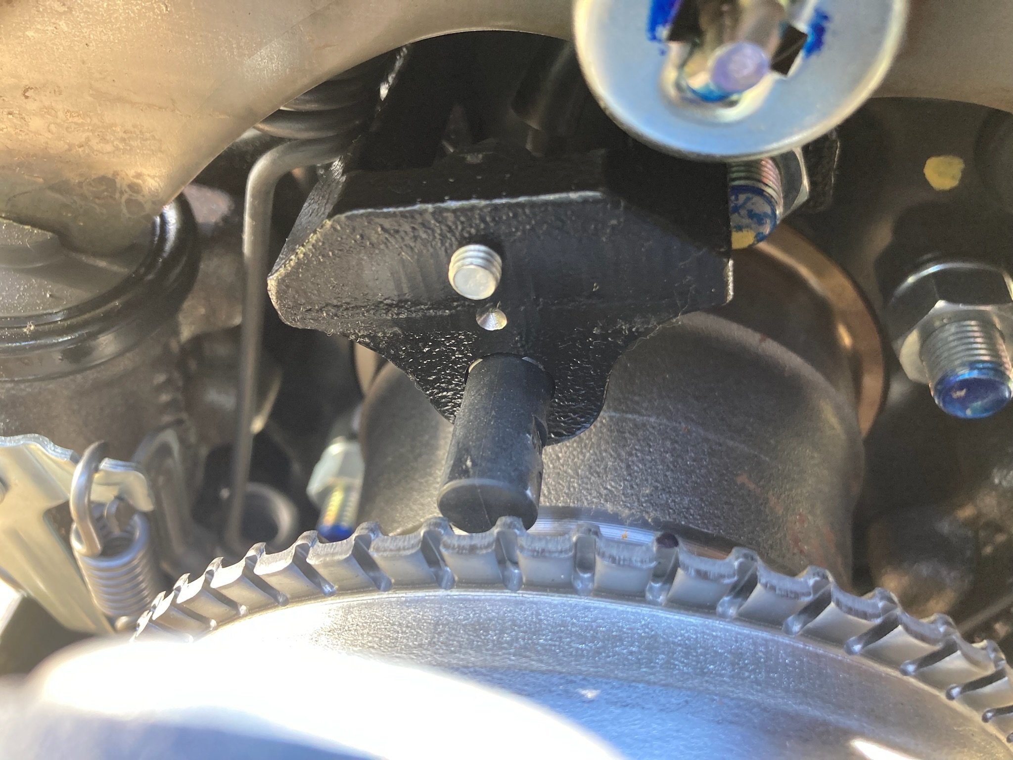 Getting ABS to work with this axle was a real challenge. We machined a tone ring onto the wheel hub, built custom sensor brackets, and confirmed the computer could read wheel speed. But when installing the rotors, we discovered there wasn’t enough clearance — the sensor sat too tall and hit the inside of the rotor.